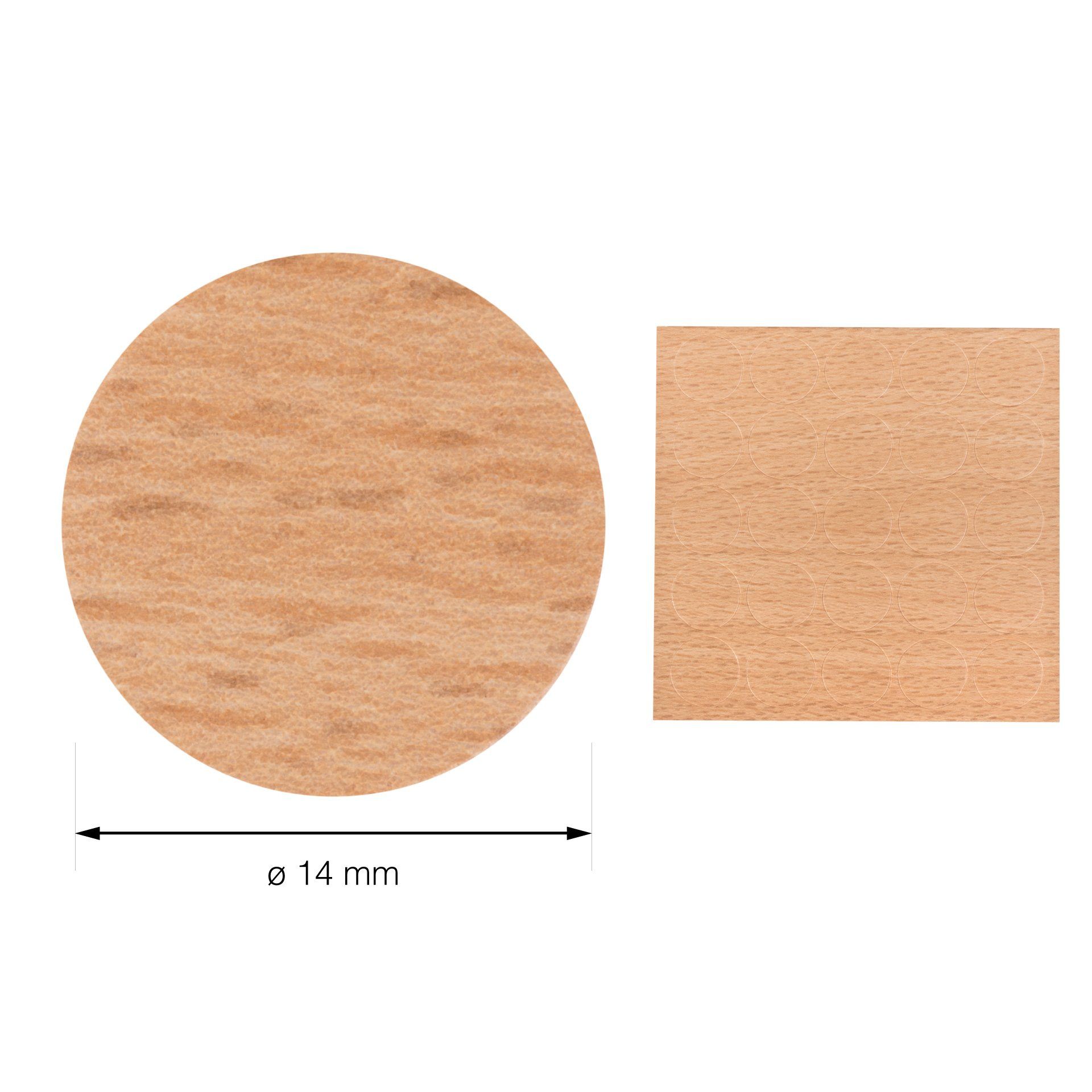 50er Sets Schraubenabdeckung selbstklebend Ø 14 mm ; Die Abdeckkappen für Schrauben sind in 4 verschiedenen Dekors erhältlich: Weiß, Buche, Ahorn, Weißeiche (Farbabweichungen von der Produktfotografie sind möglich)